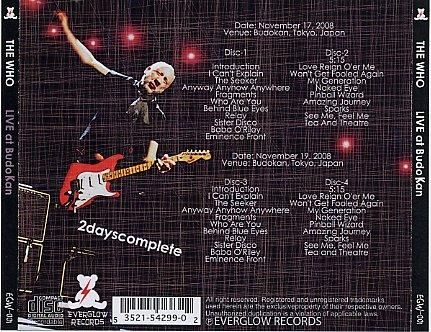2008年単独来日公演から11月17日+19日の日本武道館公演をベスト・クォリティーにて臨場感たっぷりの完全収録!ついにこの武道館で「NAKED EYES」が演奏され名盤「LIVE AT LEEDS」を彷彿させるようなMY GENERATION〜NAKED EYESの流れは昇天ものです。「TOMMY」からのセットは全公演においてハイライトでしたがこの武道館も「AMAZING JOURNEY」〜「SPARKS」と続くプレイのピートとザックのバトルはファンにとって一生の宝物となること間違いなし!スペシャル・プライスです!