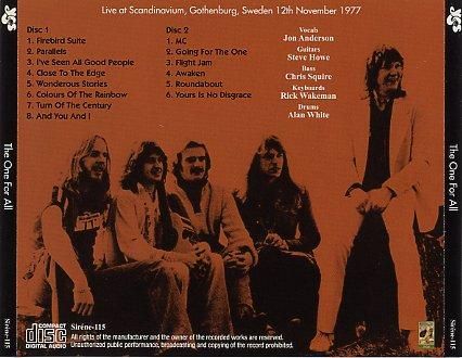 1977年「究極」に伴うヨーロッパツアーの中盤、11月12日スウェーデンはGothenburg公演を高音質・完全収録。既発を全ての面で完全に上回る「究極」ツアーの決定版の登場です。既発に比べて、クリスのベースが信じられないほど素晴らしい音で収録されており、また音質だけでなく、既発であったRoundaboutの途中の大きなカットもなく正しく決定版の登場と言えるでしょう。2枚組プレスCDにてリリースです。***なお、大変嬉しいボーナス・ディスクとして、「究極」レコーディング時におけるスタジオ・セッションの様子をクリアーな画質と高音質ライン録音で収録したDVDR(ジャケ付)が、初回納品分に付きます。これまで1時間程の収録でしたが、なんと2時間に渡って収録されており、画質・音質ともに十分に良好で、これまた「GOING FOR THE ONE SESSIONS」の決定版と言えます。