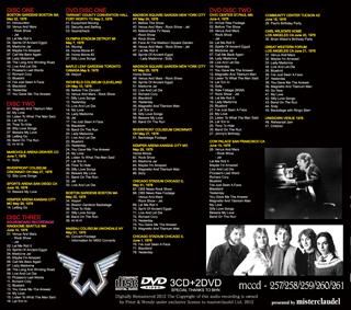 まずディスク1と2は1976年8月22日ボストン公演が収録されています。現代でも通用するほど音質が良いことで、こと音質だけで言えば本公演をベストと挙げる人がいるのではないでしょうか。本作も既発と同じソースを使用しています。ロージェネ・ソースだということですが、元々高音質ですので、既発盤と比べて飛躍的な向上というわけではありませんが、ベストな音質のひとつと言えるでしょう。元となったテープには「Soily」が収録されておらず、すわ不完全かと思いきや、この日はジミーとポールがアンコール待ちの短い間に殴り合いのケンカをしたらしく、「Soily」は演奏されなかったと記録にあります。本作は、このボストン公演を完全収録していますが、さらに特筆すべきは、別ソースで補完してさらに完全を企図している点です。最もメインソースがほぼ完璧なため、補完部分といっても、楽曲以外の初登場MCなどそのレベルですが、それでも、今まで向上の余地がないとされていたボストンの初登場部分ということで、よい完璧なものとなっています。